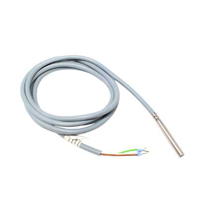 Датчик температуры с гильзой из нержавеющей стали Ø6 х 50 мм, измерение температуры от -35 °C до +105 °C, с соединительным кабелем 3 х 0,25 мм², длиной 2,0 м, монтаж в погружной гильзе (в комплект поставки не включен), 1-Wire-Bus-соединение с коммутационным модулем для системы отопления или с коммутационным модулем Klima.