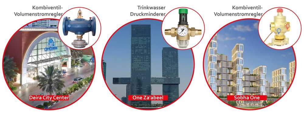 HERZ ist heute an einer Vielzahl aktueller Landmark-Projekte beteiligt wie beispielsweise One Za’abeel. Dieses Projekt zählt zu den architektonisch anspruchsvollsten Projekten Dubais mit dem weltweit längsten bewohnten Kragträger. In den Primär- und Sekundärkreisläufen der Kühlung kommen großdimensionierte Regelarmaturen, HerzCON sowie Kombiventil-Volumenstromregler zum Einsatz. Ergänzt wird dies durch Trinkwasser-